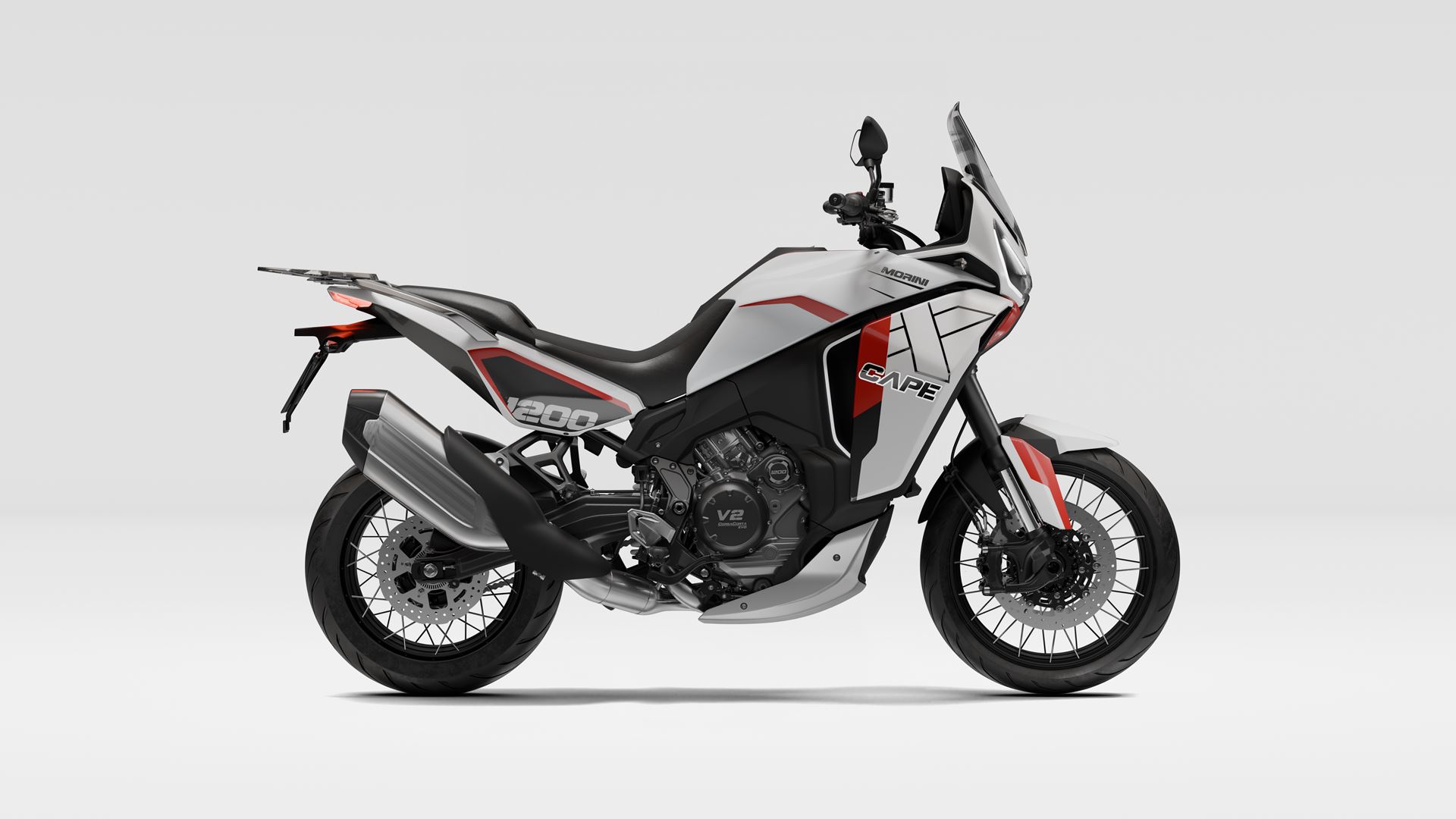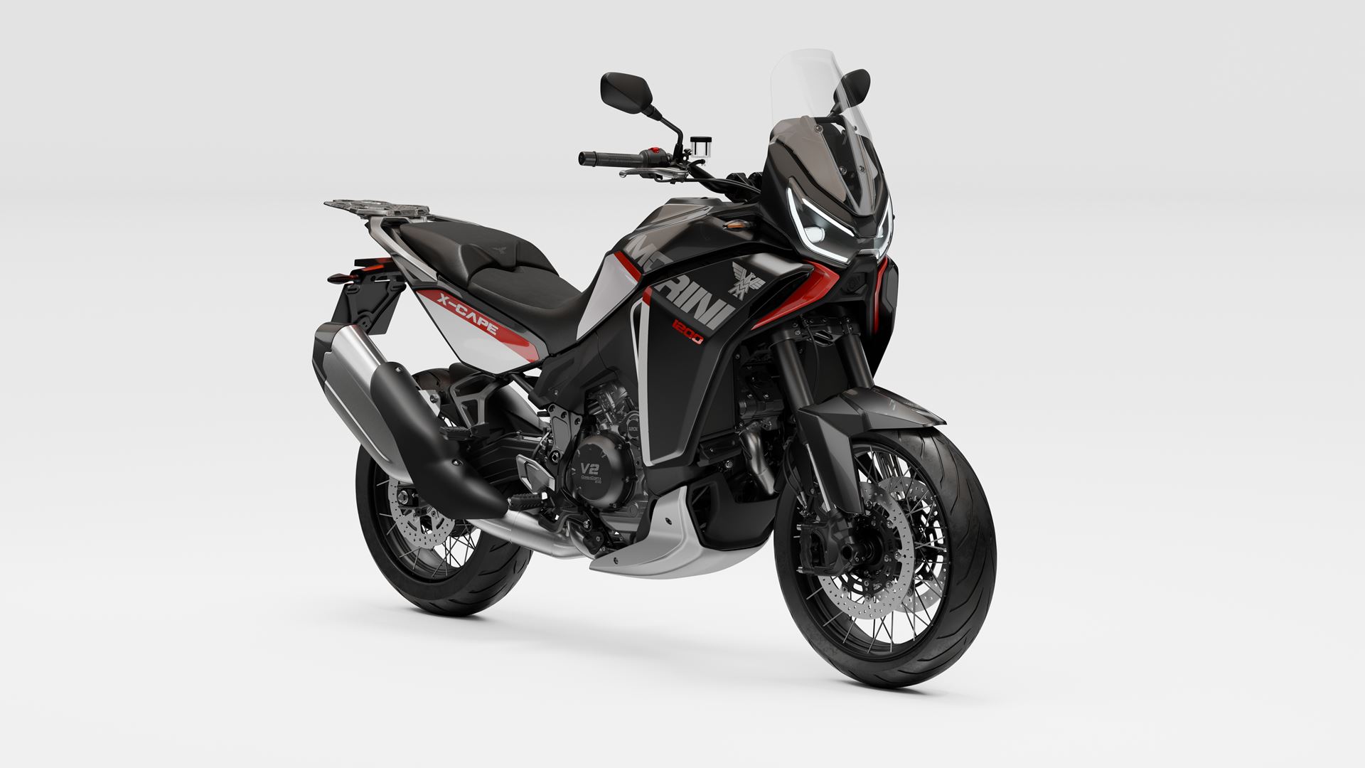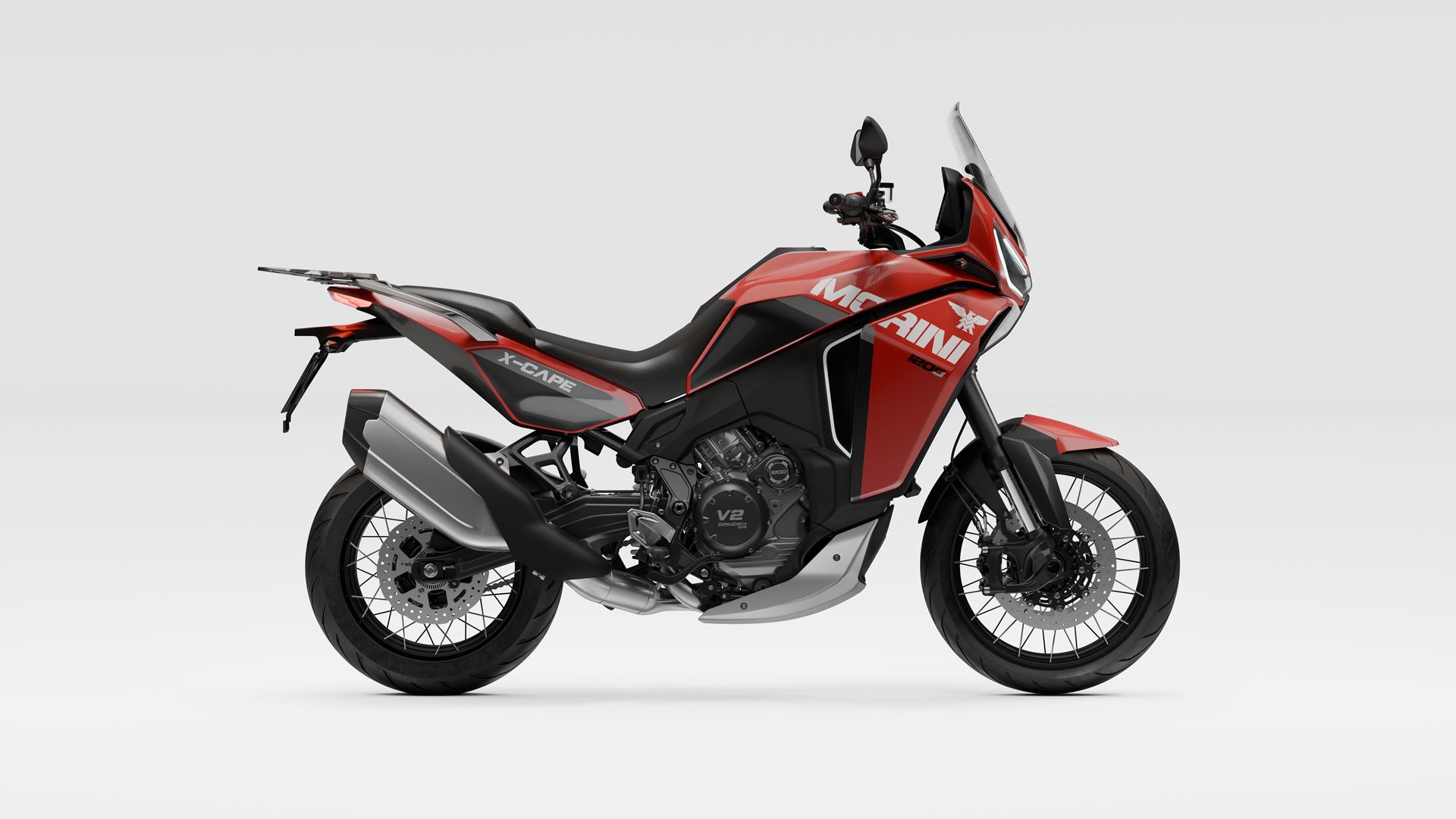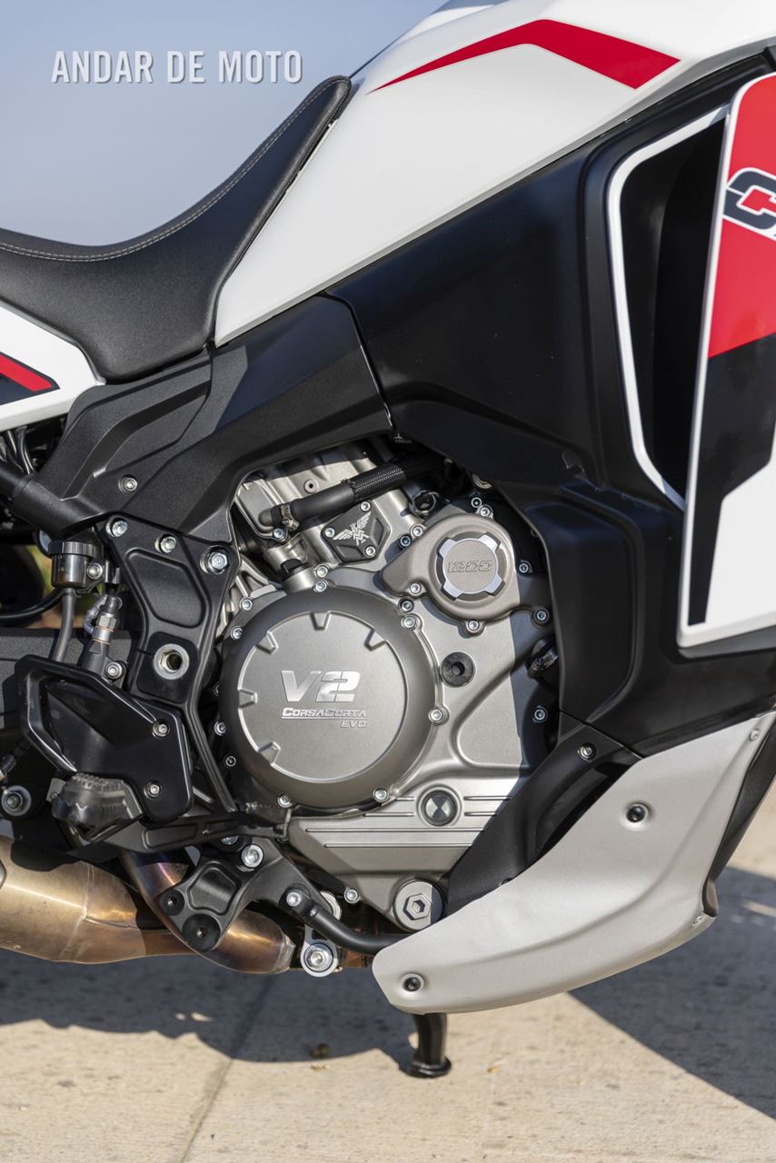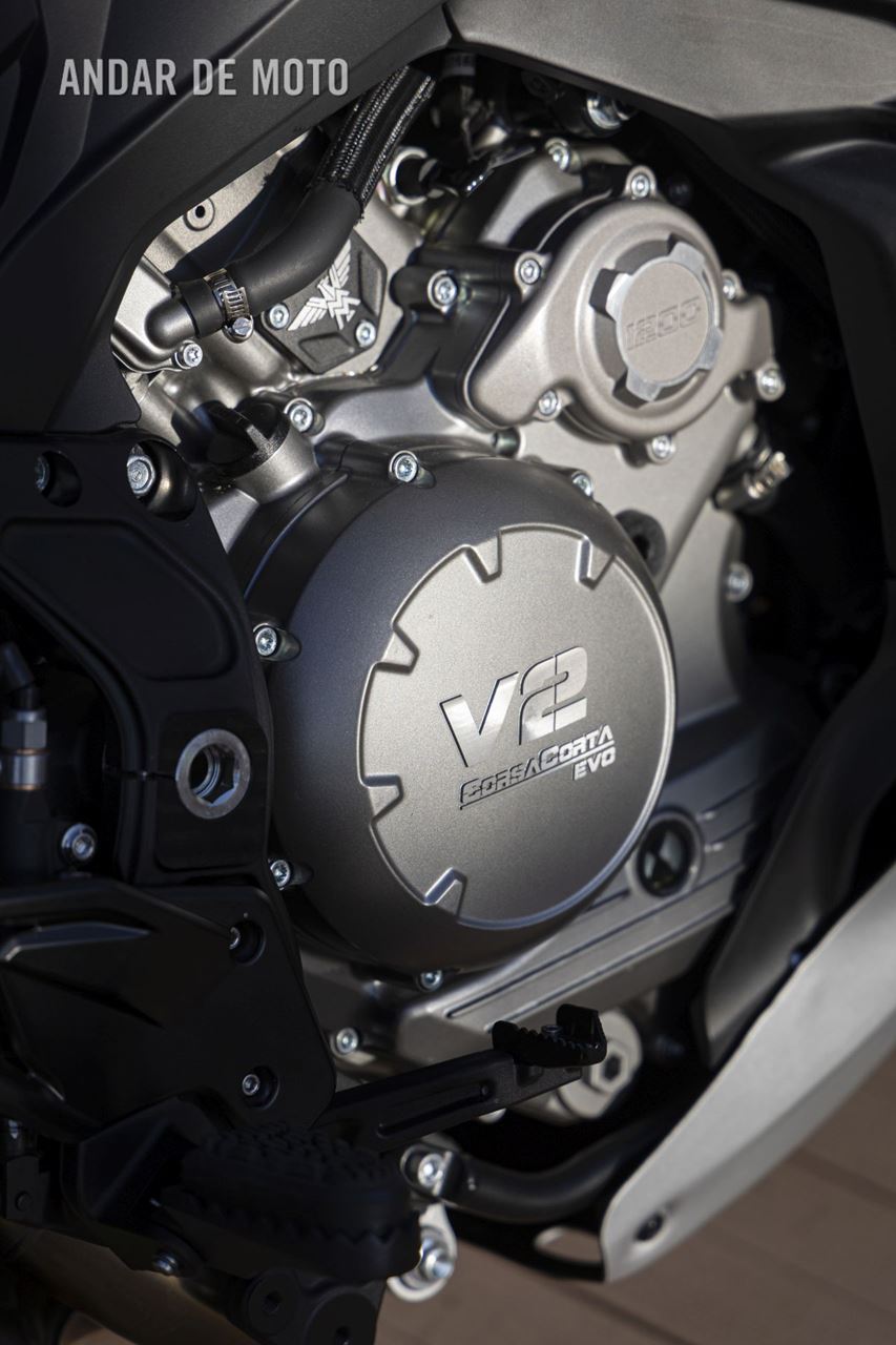 A Moto Morini X-Cape 1200 2020 está equipada com o motor CorsaCorta (de curso curto) V-twin de 1187 cc, oito válvulas e refrigeração por líquido, em produção desde 2006 e agora finalizado.