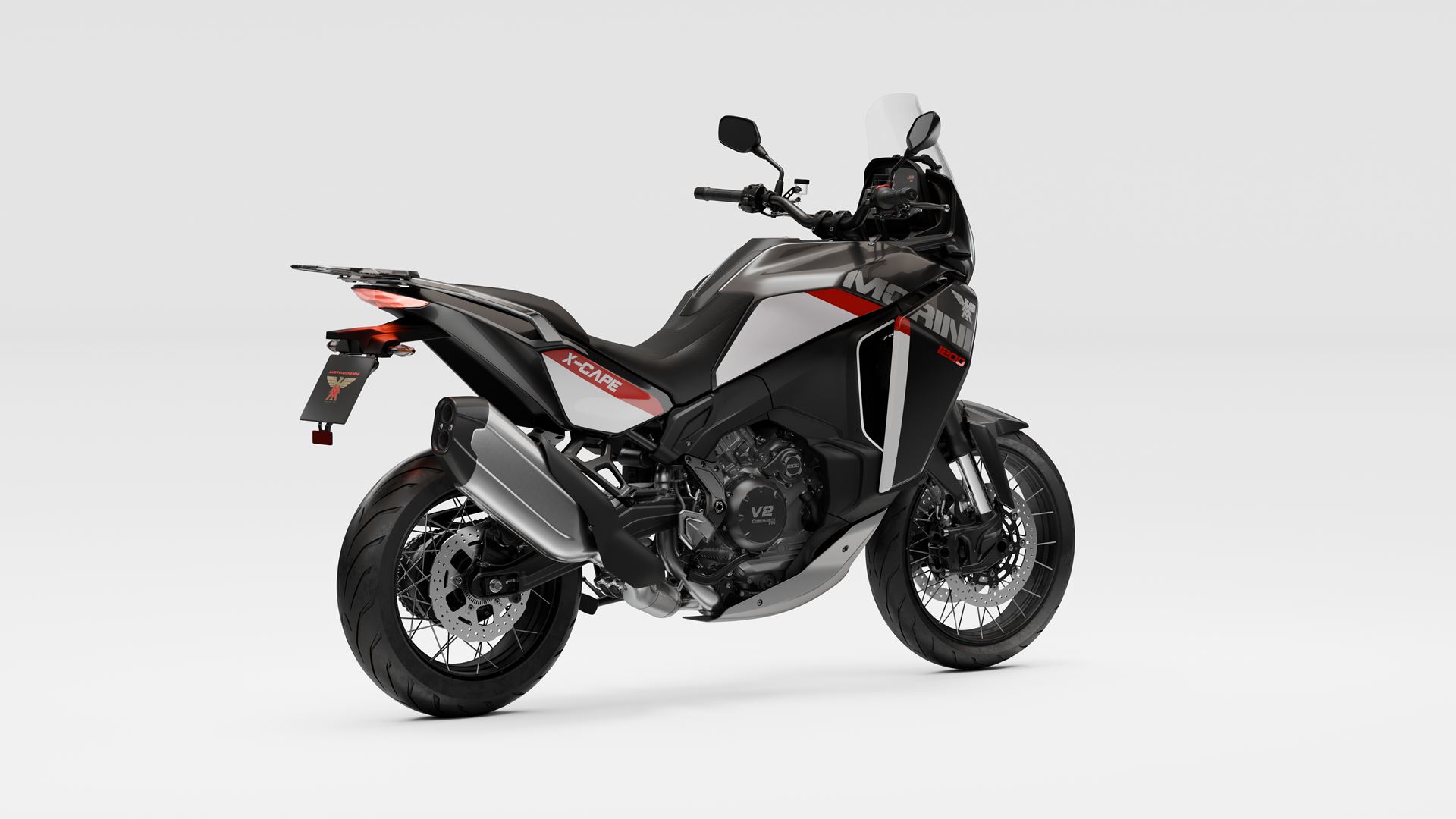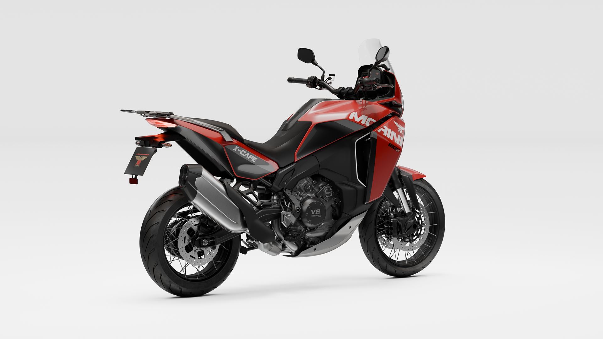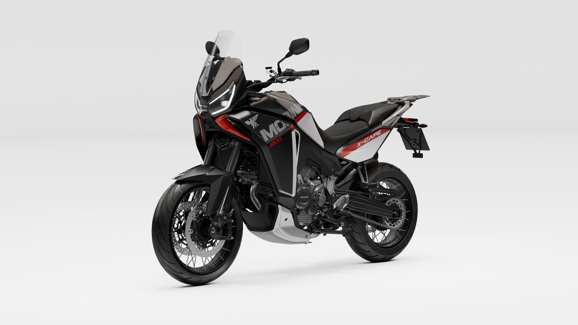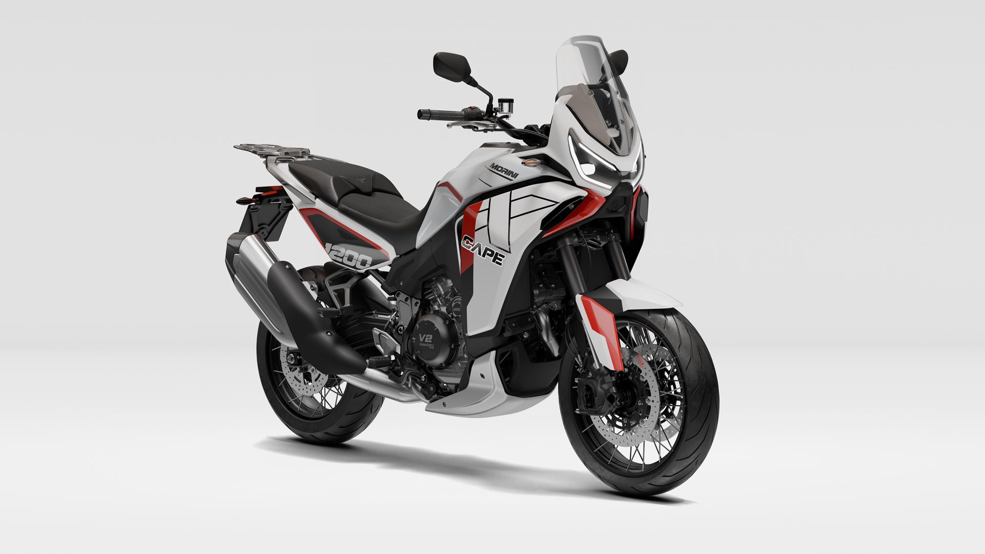 A Moto Morini X-Cape 1200 2020 está equipada com o motor CorsaCorta (de curso curto) V-twin de 1187 cc, oito válvulas e refrigeração por líquido, em produção desde 2006 e agora finalizado.