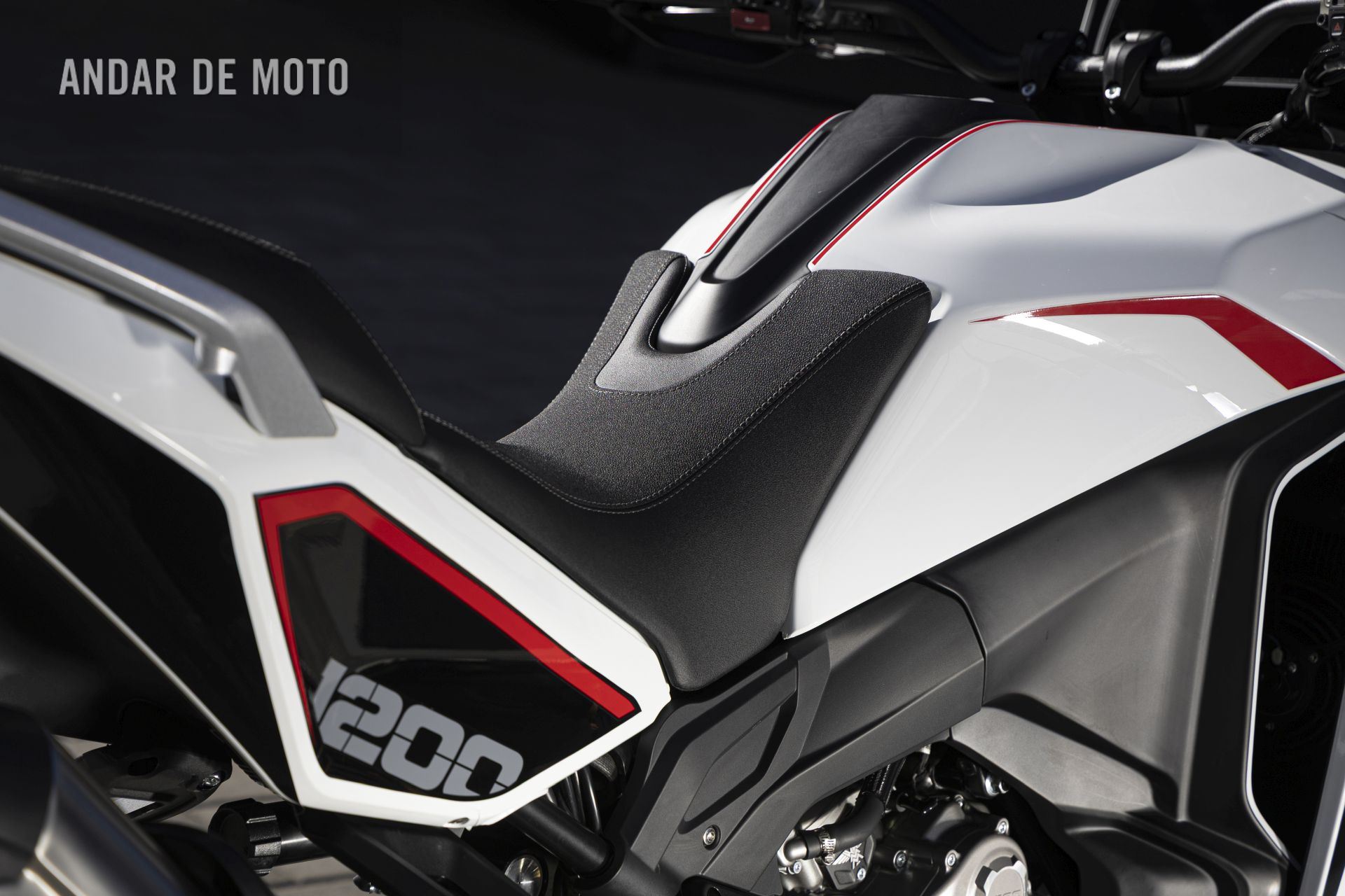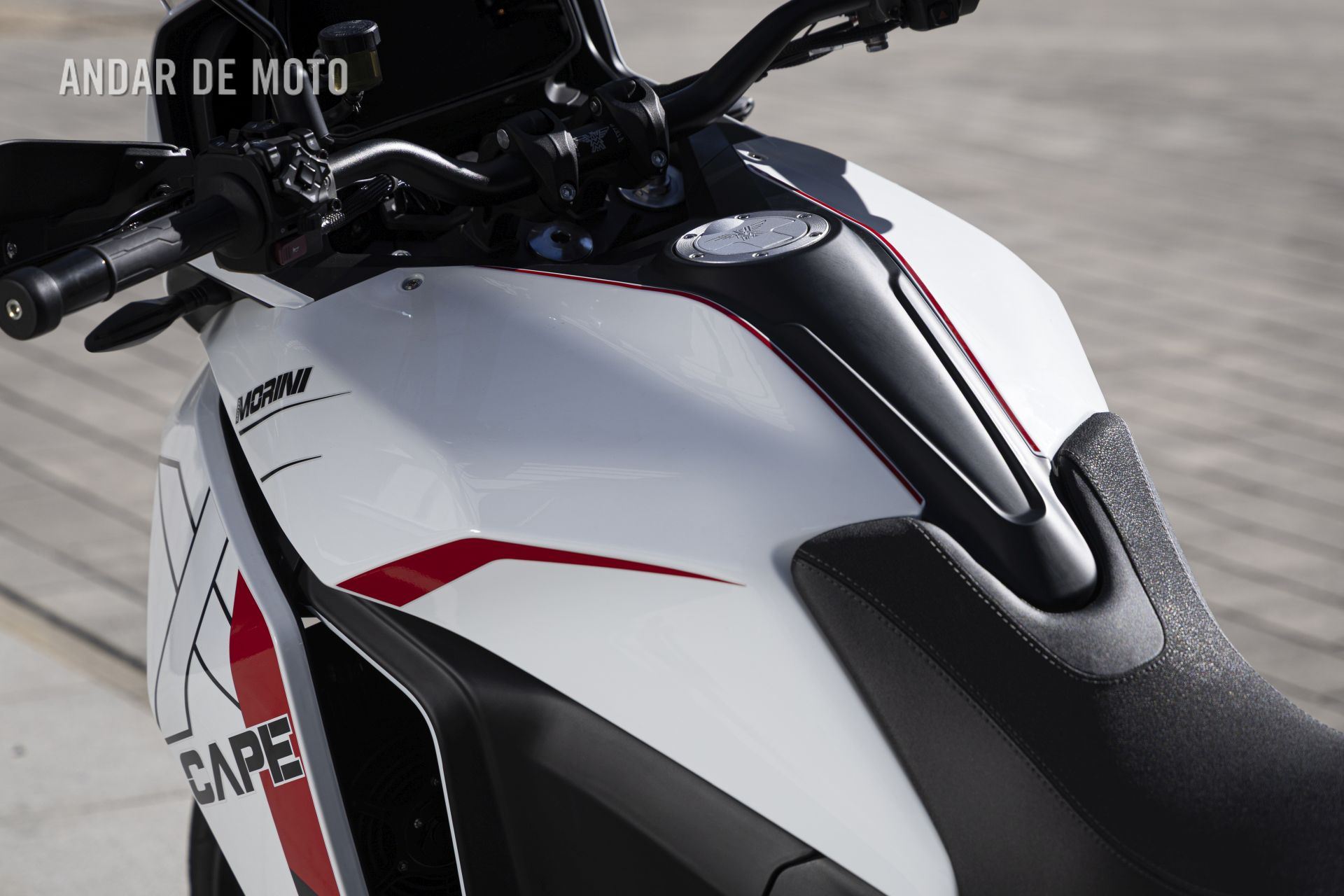 Portanto, este aspeto da posição de condução é adequado para os condutores mais altos para os quais a Morini X-Cape 1200 foi concebida, mas duvido que apreciem a altura dos poisa-pés, muito altos, depois de algumas horas a conduzi-la. E, sem dúvida, o espaço entre o assento e o enorme depósito de combustível de 24,5 litros é demasiado grande. Tive dificuldade em pousar as pontas dos dois pés ao mesmo tempo no chão, resultando numa sensação de instabilidade, apesar de estar acomodado dentro da carenagem, em vez de estar sentado sobre ela. Isto tornou a condução da X-Cape 1200 algo intimidante a baixas velocidades, especialmente em curvas em U.