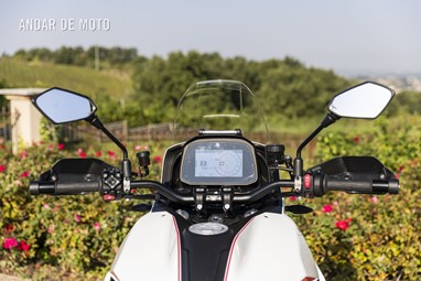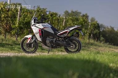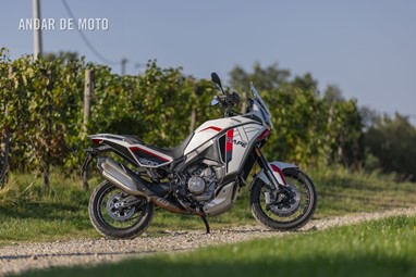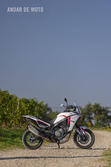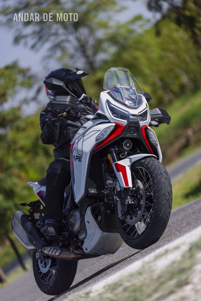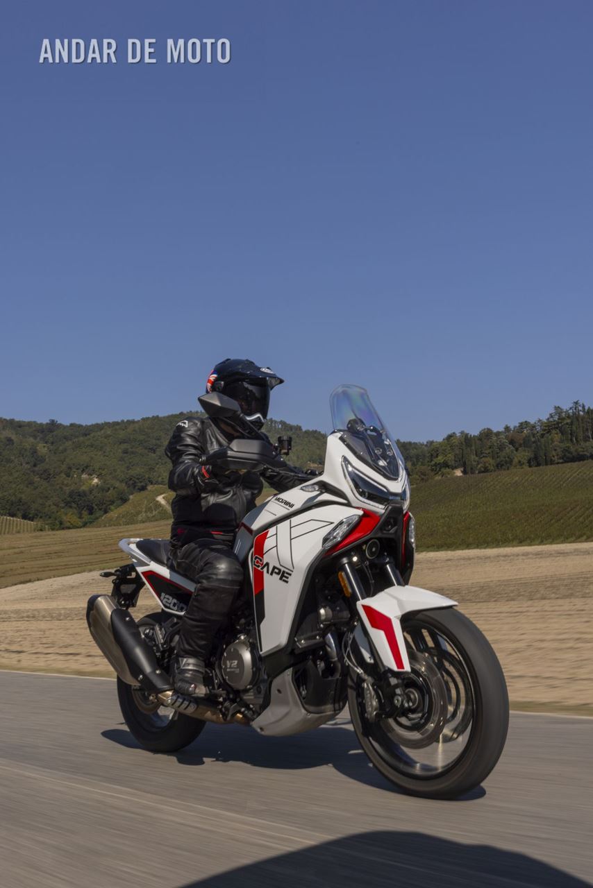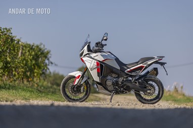 E se no papel tem uma boa relação qualidade-preço, mas como é conduzi-la? Bem, a oportunidade de passar um glorioso dia ensolarado de outono a bordo da X-Cape 1200, levando-a tanto em estradas pavimentadas como por trilhos pelas colinas cobertas de vinhas da região de Oltrepò Pavese, na margem sul do rio Pó, deu-me a hipótese de verificar as suas credenciais. Isto revelou que a X-Cape tem potência suficiente para entusiasmar, mas não ao ponto de estar a empinar a roda dianteira nas três primeiras velocidades sob forte aceleração, como acontecia na sua antecessora, a Corsaro ZZ. Em vez disso, é uma moto muito mais equilibrada, sem perder a emoção inconfundível daquele motor potente.