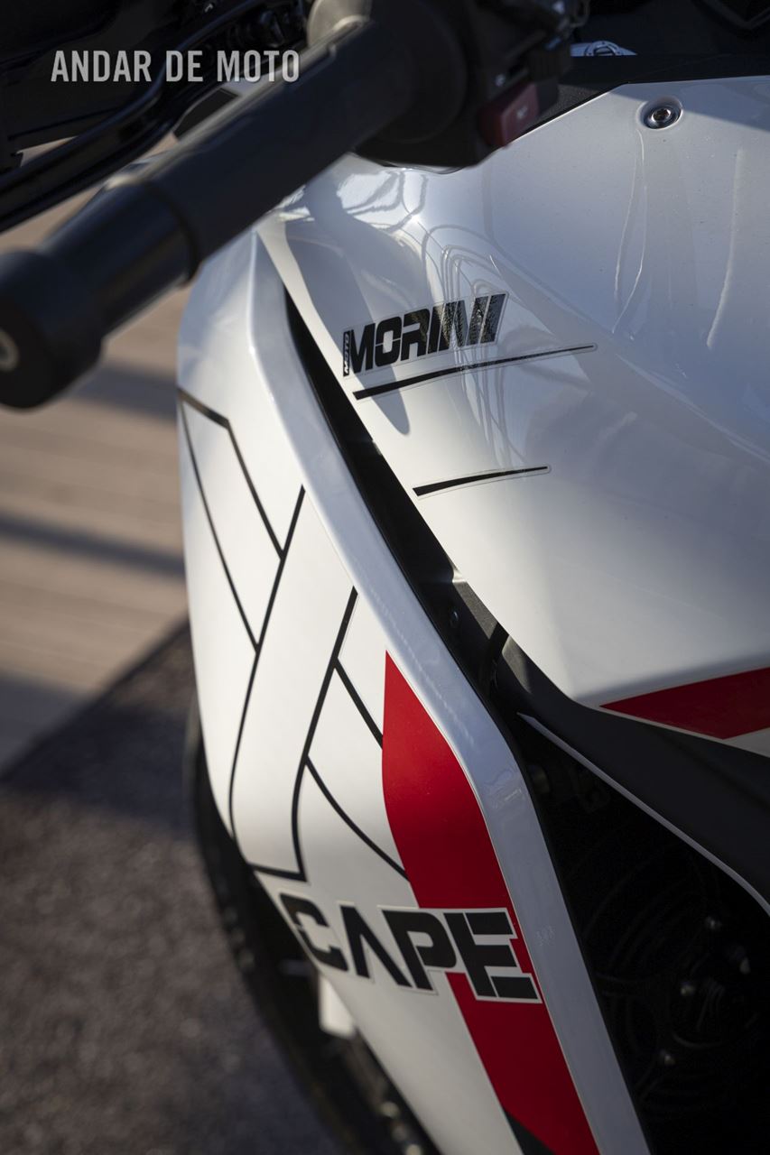 O sistema de travagem radial Brembo Stylema, como é habitual, mostrou-se impecável ao parar a X-Cape a altas velocidades, emparelhado com quantidade adequada de travão-motor que a Morini deixou ajustada às definições da embraiagem deslizante APTC. Fortes, mas não bruscos, os travões Brembo funcionaram bem para travar aquela que, no papel, é uma moto bastante pesada, mas que, na prática, sinceramente, não parece assim tão pesada.