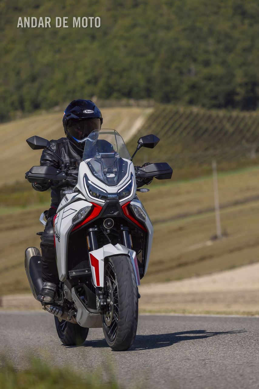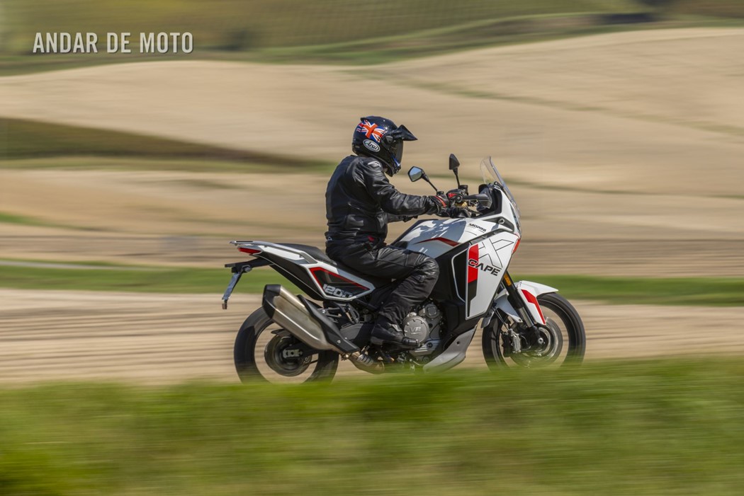 Foi difícil não ficar impressionado com este novo modelo depois de passar um dia a conduzi-lo, e a principal razão é a forma como a Moto Morini reajustou o motor CorsaCorta, com o seu maravilhoso binário, para o tornar tão flexível e tolerante, rápido e amigável. A X-Cape 1200 é uma moto muito agradável de conduzir a alta velocidade, devido à sua entrega de potência refinada e à sua condução surpreendentemente controlável para uma moto tão grande. Como o meu teste em estradas de terra batida provou, tem capacidade básica para todo-o-terreno, mas uma moto tão pesada sente-se certamente mais à vontade no asfalto.