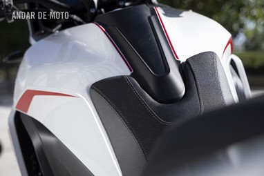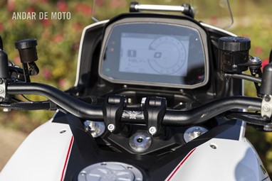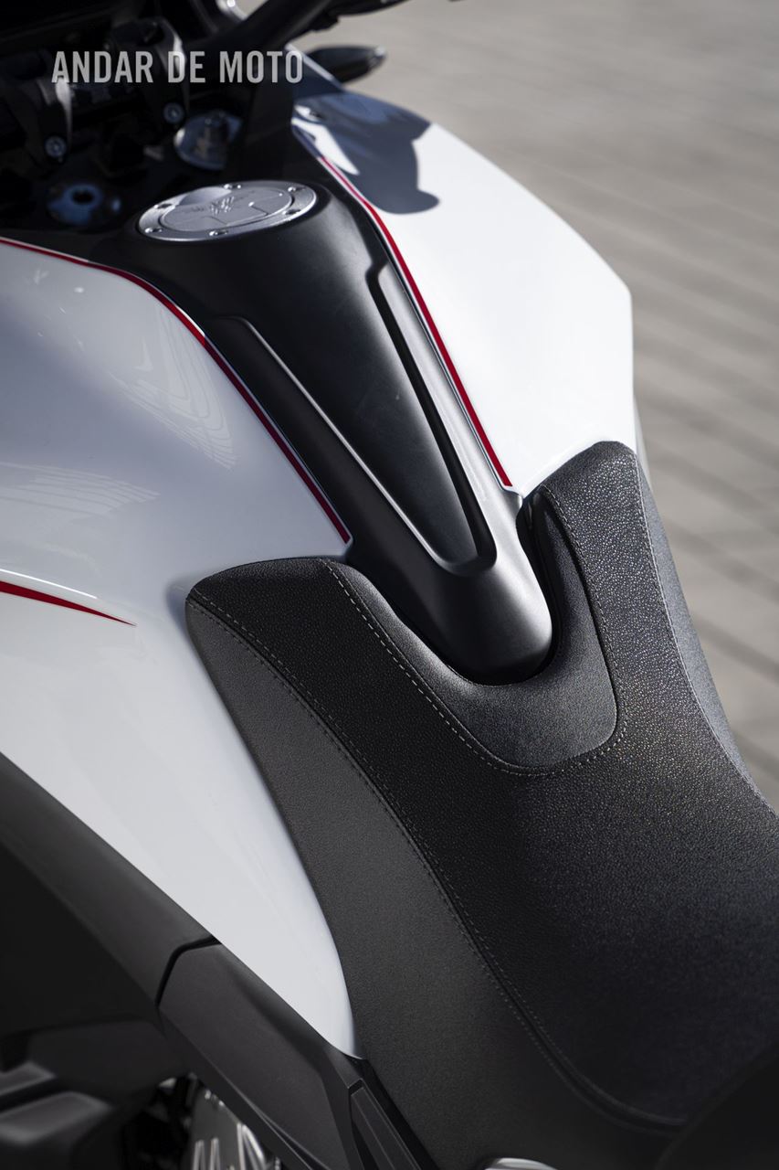 Aliás, para além desta sensação de alta qualidade, a única coisa de que não gostei mesmo nada na X-Cape 1200 foi a embraiagem demasiado dura. Ainda bem que o quickshifter bidirecional funcionou na perfeição, bem calibrado e não excessivamente sensível, porque quando finalmente precisei de utilizar a embraiagem no trânsito ou em curvas apertadas, a manete pareceu-me demasiado pesada. Alberto Monni confirmou que os modelos de produção terão um atuador maior, o que, espera-se, irá resolver o problema.