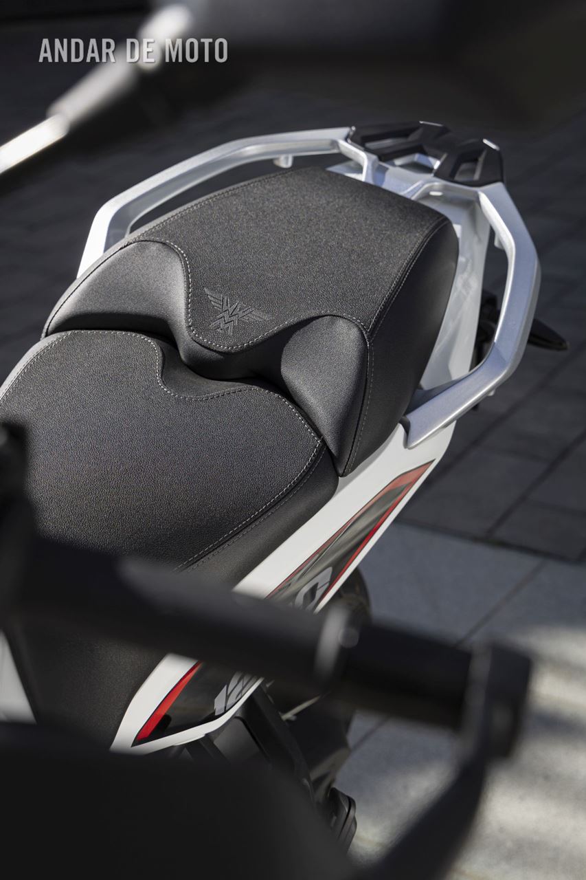 Vem ainda com sistema de navegação integrado através de aplicação para iOS ou Android, que oferece ligação Bluetooth para telefone ou música, duas portas USB (uma A e uma C), iluminação de curva altamente eficiente e câmara frontal com gravação automática contínua de vídeo até 15 horas. A única coisa que falta é a suspensão electrónica da Kayaba, mas, tirando isso, esta é uma grande moto para o preço, como é cada vez mais comum hoje em dia com os produtos Moto Morini concebidos e desenvolvidos em Itália, mas fabricados na China.