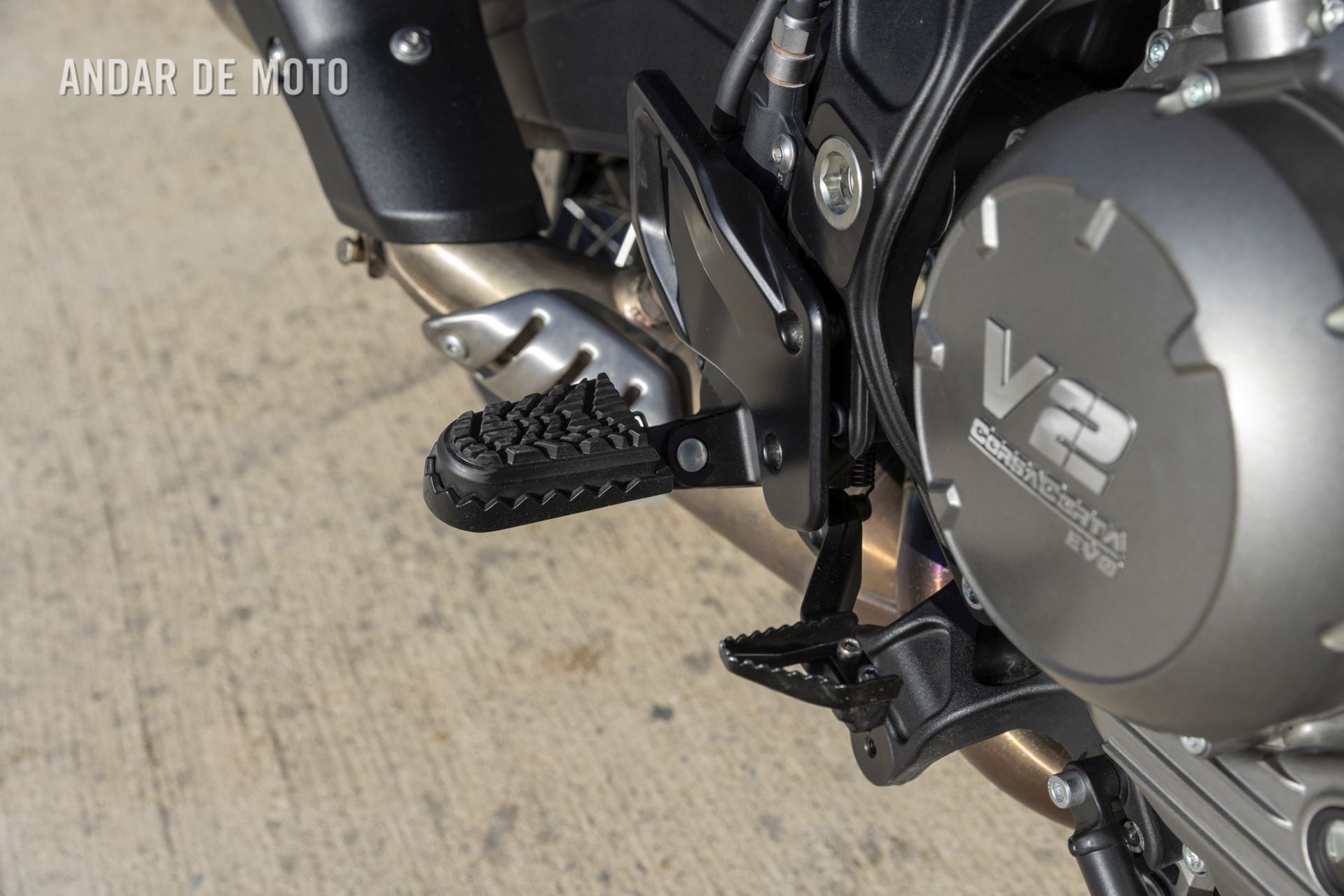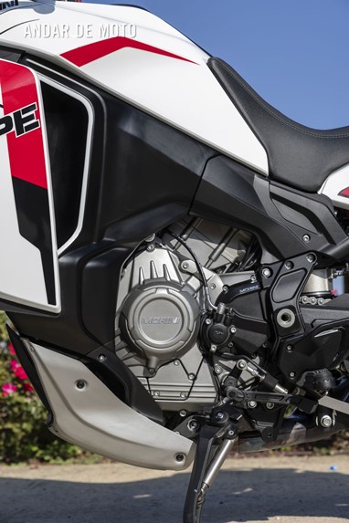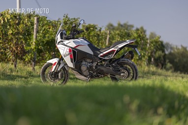 O mapeamento de combustível é excelente em toda a gama de rotações, funcionando suavemente até ao limitador, às 9.500 rpm, que dificilmente encontrará em situações de condução reais, pois a distribuição de potência, e principalmente de binário, é muito ampla em toda a gama de rotações. Bem, exceto, curiosamente, em segunda velocidade no modo Touring, por volta das 3.000 rpm, quando o acelerador oscila e provoca um solavanco na transmissão. "Sabemos disso e estamos a trabalhar com a Marelli para corrigir o problema antes de entregar as motos aos clientes", disse Alberto Monni quando mencionei o assunto na nossa reunião de avaliação ao final do dia, enquanto degustávamos um copo de vinho branco Oltrepò gelado.Mas que estranho que não se comporte da mesma forma nos modos Sport ou Offroad, apenas no Touring. O modo Sport oferece uma entrega de potência agradável, linear, mas ágil, com uma resposta rápida ao fechar o acelerador; o modo Touring é mais suave e descontraído, mas ainda assim suficientemente desportivo; enquanto o Offroad oferece uma resposta do acelerador mais contida, ideal para superfícies escorregadias, como estradas de terra batida em torno de campos em processo de colheita, onde o ABS entrou em ação algumas vezes, mas não de forma excessiva. Em todos os casos, a resposta do acelerador é extremamente suave e controlável. Missão cumprida.