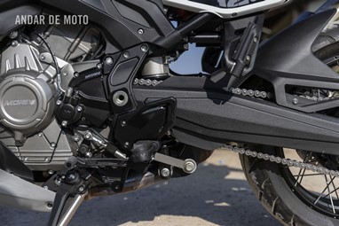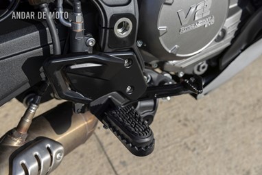Sem dúvida, a X-Cape 1200 é uma máquina imponente: a longa distância entre eixos acentua a construção geral da moto, que é visualmente impressionante, com aquele característico sorriso característico da família X-Cape. De certa forma, é uma pena que as laterais da carroçaria escondam parcialmente o belo motor V-twin, aqui pintado num atraente tom de cinzento-chumbo, mas que proporcionam mais espaço para os joelhos se apoiarem na moto. Ao subir para o assento alto de 840 mm, descobri que os substanciais apoios para os pés estão posicionados bem acima, e as borrachas removíveis deixam a descoberto os poisa-pés serrilhados adequados a uma utilização todo-o-terreno intensa.
