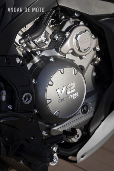 A redução do ângulo do cilindro em três graus no cárter, em comparação com um V-twin de 90º mais convencional, que oferece um equilíbrio primário perfeito, proporciona uma poupança de 30 mm no espaço entre as cabeças, sem necessidade de um contrapeso para suavizar as vibrações indesejadas. Isto, por sua vez, permite que o motor seja instalado de forma mais compacta e como um componente totalmente estrutural do quadro em compósito. O comprimento total do motor é de apenas 350 mm, com o braço oscilante de alumínio fundido de 630 mm da X-Cape a pivotar tanto no cárter como no quadro.