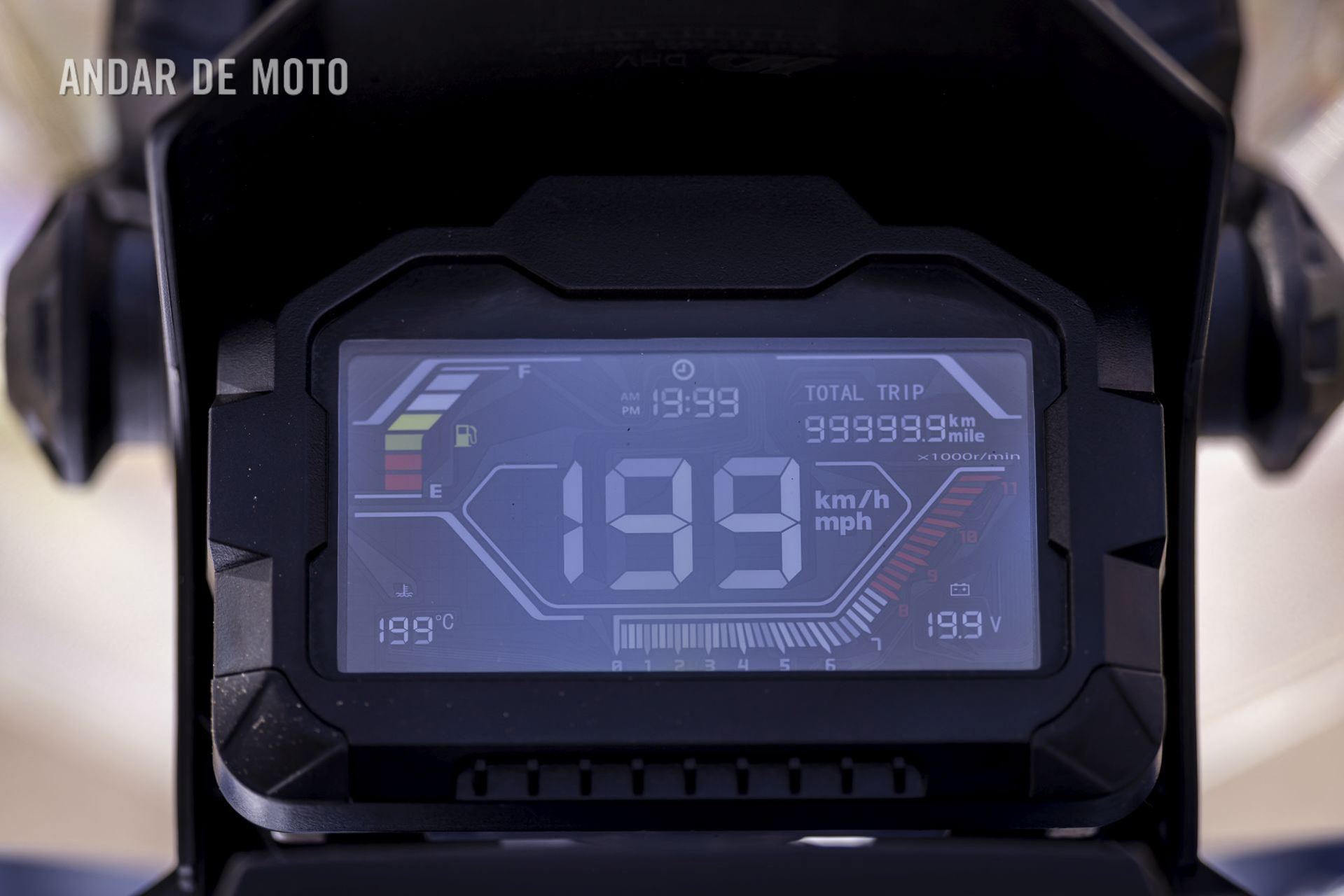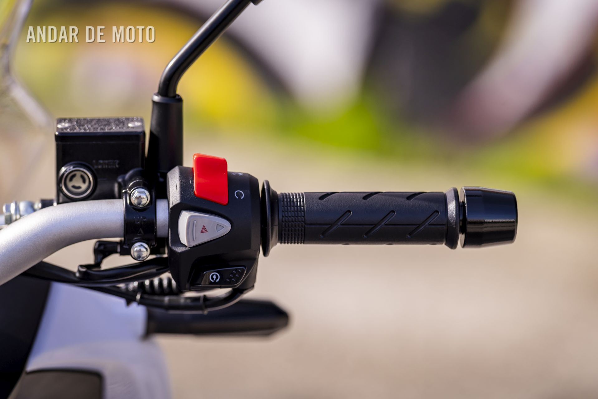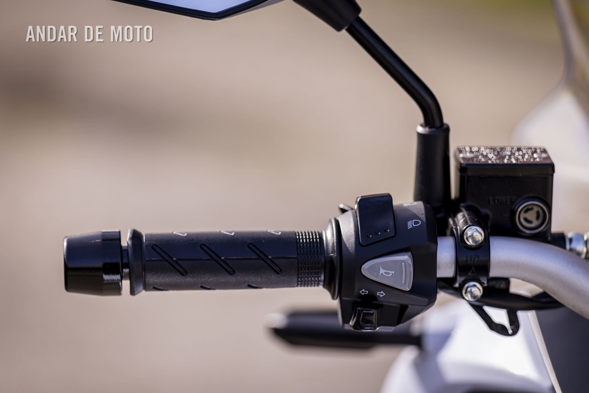 Em pisos de pior qualidade, escuta-se um ou outro chocalhar, mas vamos bem instalados, ainda que as suspensões, sem qualquer regulação, tenham alguma dificuldade em digerir o asfalto de pior qualidade. Esse efeito é mitigado pelos largos pneus, nas medidas 130/70-14 à frente e 110/80-13 atrás, de marca Cordial, que cumpriram com mérito o teste, até mesmo com chuva.