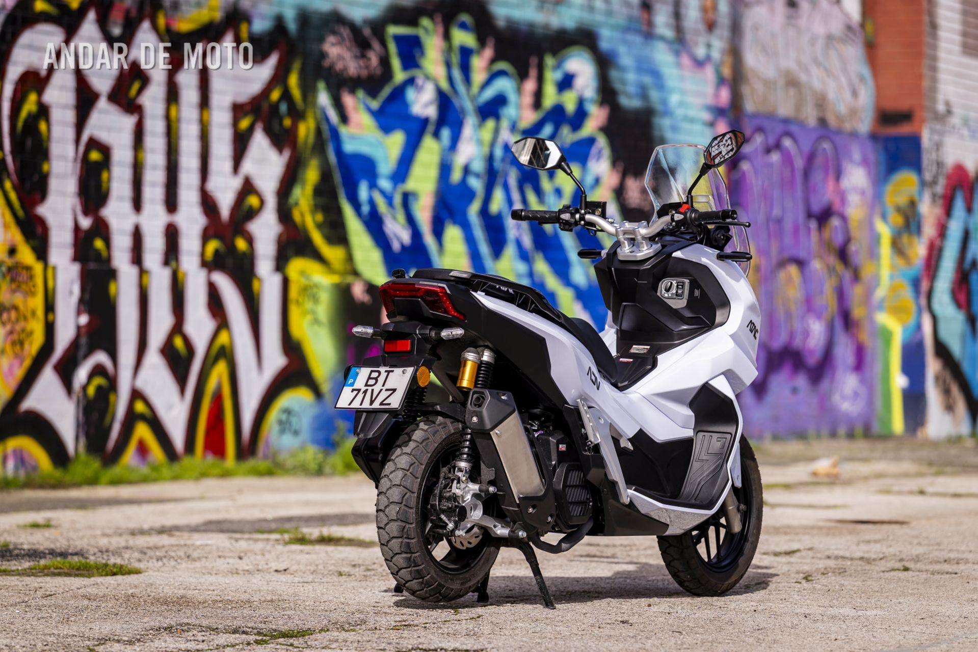 Num momento em que a diversidade está na ordem do dia, esta ADV não traz nada de novo ao segmento das 125 cc, pois já existem várias marcas com modelos crossover, mas esta scooter tem “boa pinta” e este branco brilhante fica-lhe bem, no entanto fica a dúvida se merece ficar suja de barro.