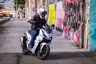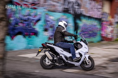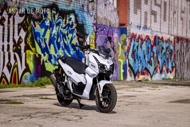 A primeira vez que a vi ao vivo foi exatamente quando iniciei o test ride e as expectativas não eram altas. Uma scooter com ar de aventura, a custar 2.790 Euros (mais despesas) e com uma presença que não difere muito das suas adversárias… será que tem argumentos para singrar ou será apenas mais uma?
