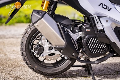 Depois deste devaneio, volto à nova máquina com a chancela da Lusomotos, que tem neste modelo uma scooter de perfil mais aventureiro (daí a designação ADV, abreviatura de ADVenture) em que saltam imediatamente à vista os pneus mais largos, tal como toda a estrutura da moto em posição mais elevada.